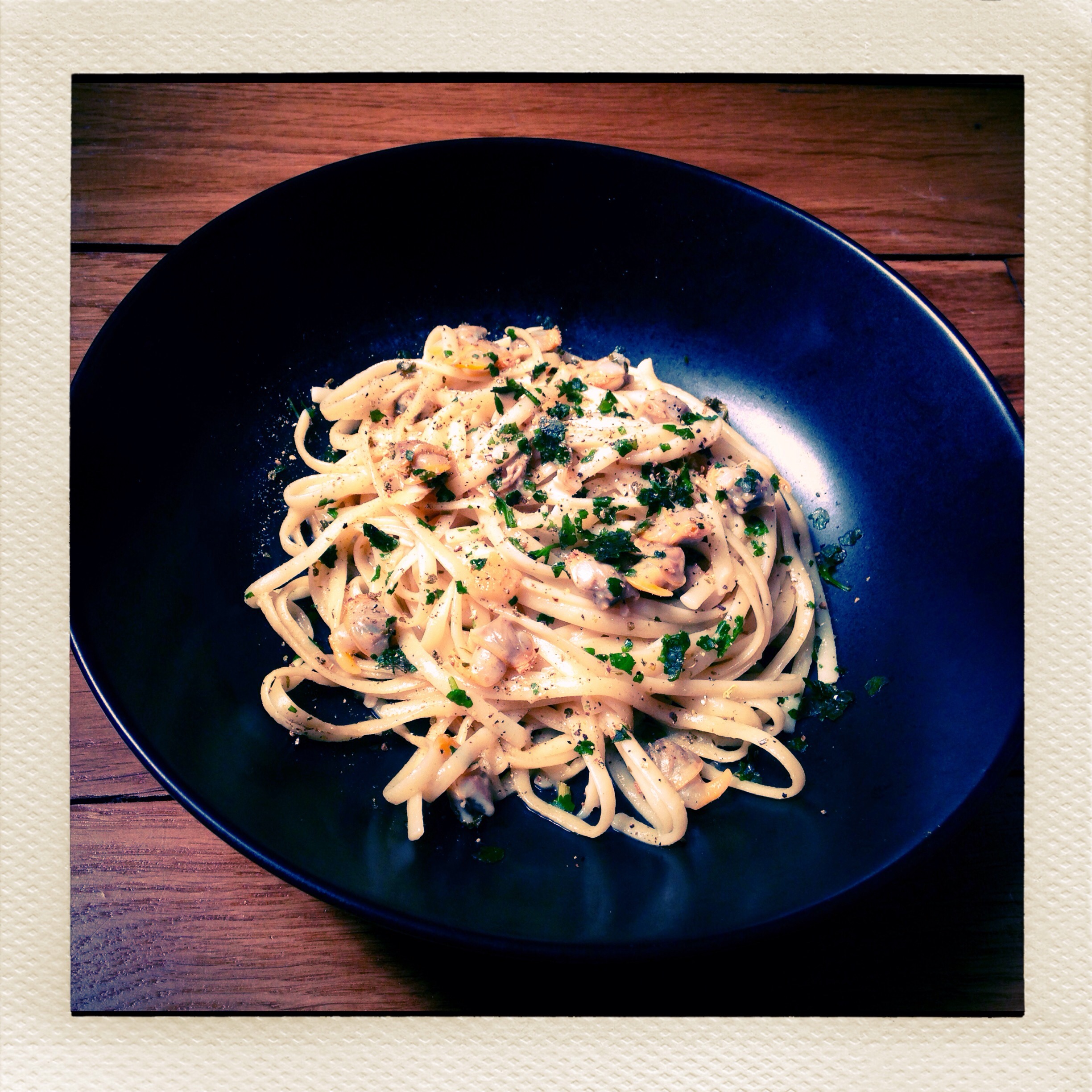 - Faites cuire les linguini al dente dans de l’eau bouillante salée puis égouttez-les.