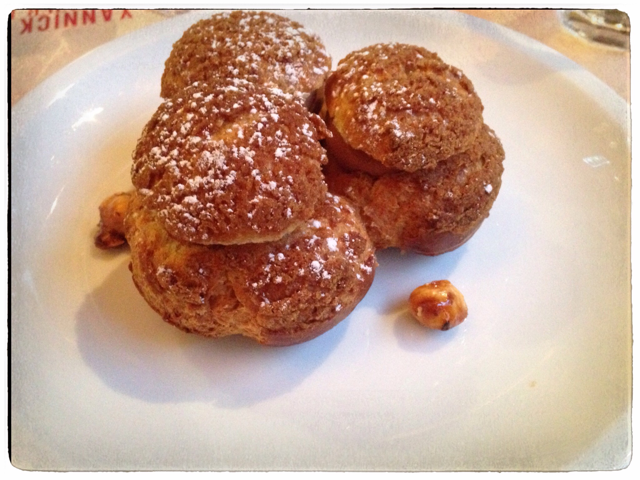 Enfin, nous avons fini le repas avec des desserts. Au menu : la brioche « Nanterre » perdue, avec une glace à la vanille (10€), les framboises du parisien et chouquettes à la chantilly (8€), le sablé friand aux fraises d’Ile de France (9€) et pour ma part, le Paris-Brest, le dessert signature. Les desserts étaient globalement tous très bons. J’ai tout de même été un peu déçue par le Paris-Brest, trop chocolaté et caramélisé pour moi.