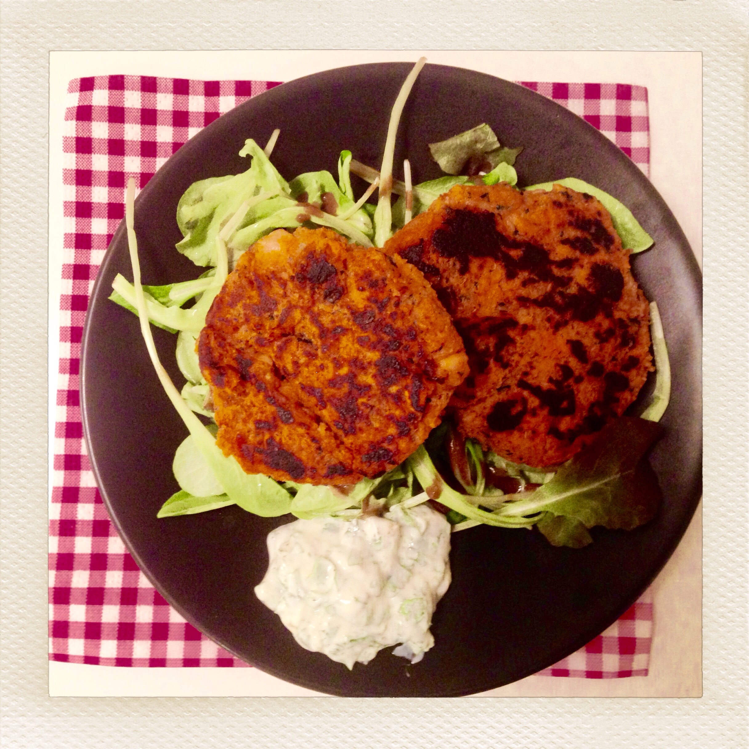 - Dans une poêle antiadhésive, faites revenir les galettes à feu moyen 3 minutes de chaque côté dans l’huile d’olive. Elles doivent être légèrement dorées et chaudes à l’intérieur.